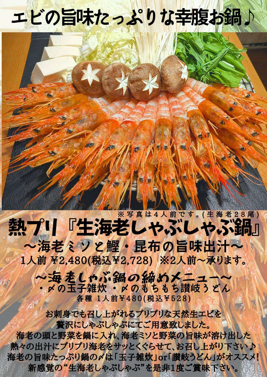 2種類の福を巻き込んだ海鮮恵方巻をご準備しております。
